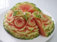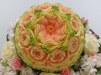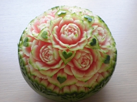いつも飾った後は美味しく頂いております。スイカのカービングをケーキカットにして。 |
