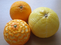 グレープフルーツ、オレンジに剥きやすく皮をカービング。