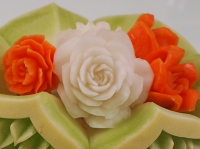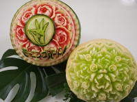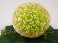 | 石けん・果物・お野菜に専用ナイフ1本でアートをしていくタイの伝統工芸、ソープ&フルーツカービング。 |